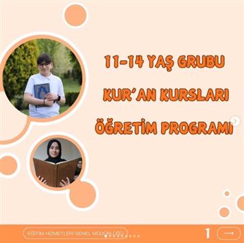 11-14 yaş grubuna yönelik Kur’an kurslarının öğretim programı, amacı ve eğitim içeriği.