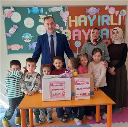 Ramazan ayının birlik, beraberlik ve paylaşma ayı olması münasebetiyle minik öğrencilerimiz örnek bir hassasiyet sergiledi. Kendi imkânlarıyla hazırladıkları iki adet yardım kolisini, ihtiyaç sahibi ailelere ulaştırılmak üzere büyük bir heyecan ve mutlulukla teslim ettiler.