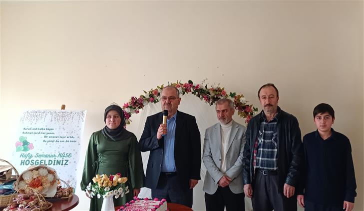 Sultantepe Kız İmam Hatip Ortaokulu Proje Hafızlık öğrencisi Semanur Köse'nin Hafızlığını tamamlaması vesilesiyle; Safranbolu Müftümüz Aydın Bostancı, Okul Müdürü Osman Söylemez, şube müdürlerimiz Necmi Açıkgöz ile Bilal Kayabaşı, Hafizemizin ailesi, kurs hocalarımız ve hafızlık yapan öğrencilerimizin katılımıyla program düzenlendi.