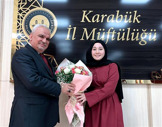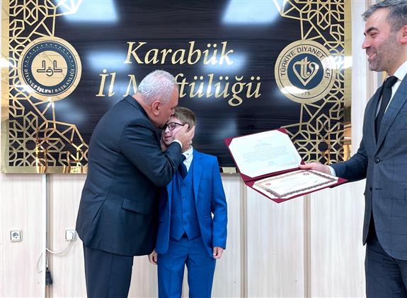 Türkiye Diyanet Vakfı Karabük Şubesince hazırlanan hediyeleri de takdim eden Müftü ERHUN “Kur'an kurslarımızda hafızlıklarını tamamlayarak girdikleri sınavda başarılı olan ve hafızlık belgesi almaya hak kazanan hafız evlatlarımızı tebrik ediyorum. Evlatlarımızın, bundan sonraki hayatlarında Kur'an'ın ve İslam'ın hadimi olmalarını Yüce Rabbimden niyaz ediyorum. Onları yetiştiren anne babalarına ve hocalarına teşekkür ediyor ve tebrik ediyorum.” dedi.