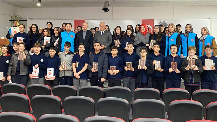 Türkiye Diyanet Vakfı tarafından Kerim Kitabımız Kur’an-ı Kerim’i okuyan, anlayan ve hayatına yansıtan nesiller yetiştirmek amacıyla yürütülen “Dersimi Seçiyorum, Kur’an’ımı Alıyorum” projesi kapsamında, seçmeli Kur’an-ı Kerim dersini tercih eden öğrencilere Türkiye Diyanet Vakfı ve İl Müftülüğü tarafından Kur’an-ı Kerim hediye edildi.