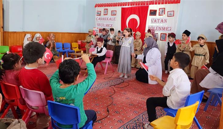 Kur’an Tilaveti ile başlayan program minik öğrencilerin şiir okuması, oyunlar ve dönmeyi düşünmeden Çanakkale’de kahramanca savaşan Mehmetçiğin muharebe meydanında yapmış oldukları kahramanlıkları gösteren tiyatro gösterileri ile devam etti.